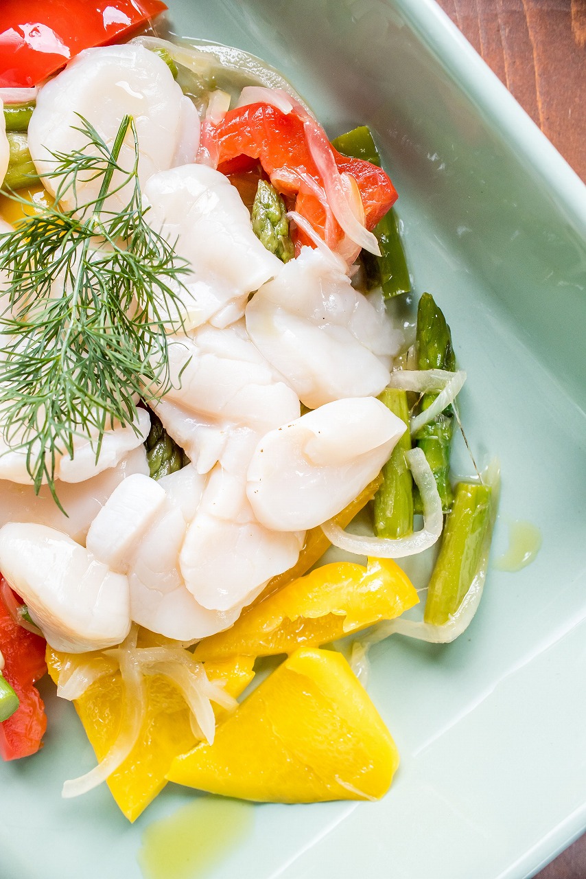ハーブの香りが食欲そそるホタテと彩野菜のハーブ蒸し